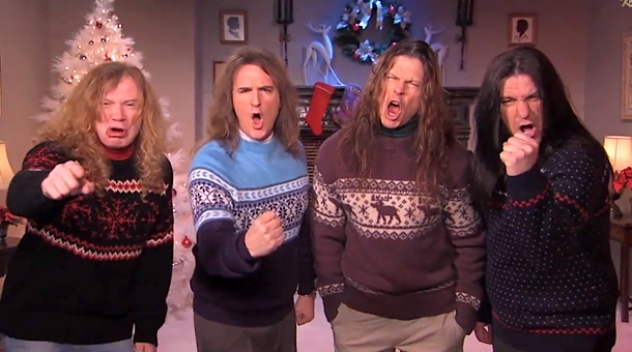 Singer Jenny Lewis and a group of children got in on the act as MEGADETH dirtied up Frosty The Snowman, The Little Drummer Boy, Do You Hear What I Hear and Baby It’s Cold Outside.